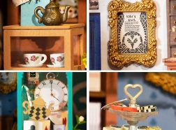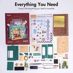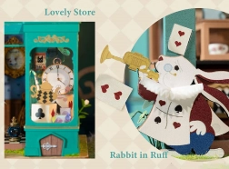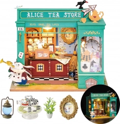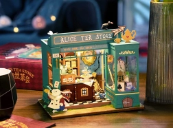 Otkrijte minijaturni svijet pun mašte – u zelenim tonovima uređen dućan s čajem s motivima bijelog zeca, džepnog sata i šahovničkog poda dočarava atmosferu europskog popodnevnog čaja. Nakon uključivanja LED osvjetljenja model se pretvara u očaravajuću dekoraciju s ugodnim večernjim ugođajem.