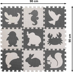 9 dijelova dimenzija 30 × 30 cm složit ćete u podlogu 85 × 85 cm. Elementi se mogu kombinirati, prenositi i brzo pospremiti u praktičnu vrećicu.