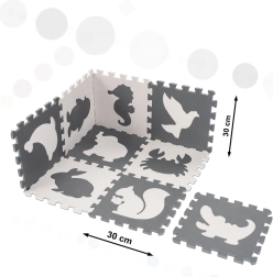 Materijal EVA je elastičan, apsorbira udarce i vrlo se lako održava – dovoljno je prebrisati vlažnom krpicom. Dijelovi precizno prianjaju, pa su montaža i demontaža pitanje trenutka. Stilsko izvedenje dodatno služi kao dekorativni element dječje sobe.