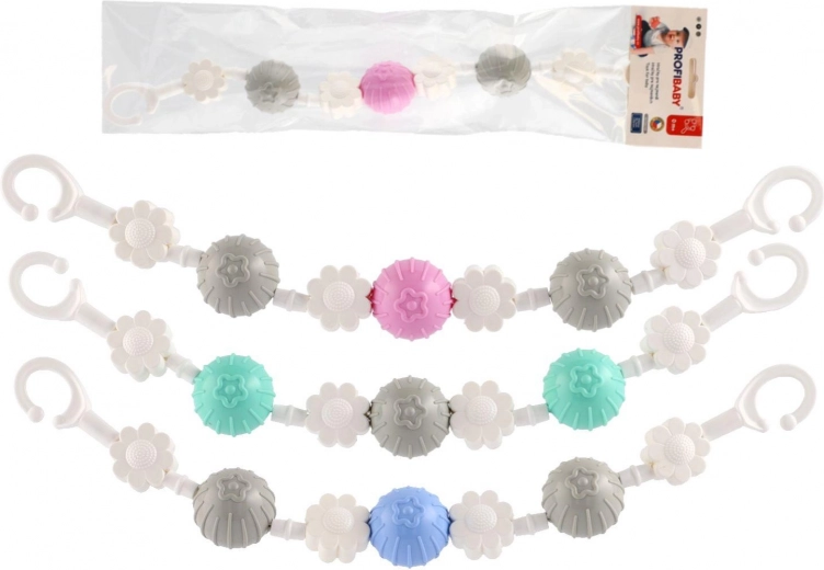 Preslatka viseća igračka za kolica s rotirajućim kuglicama i cvjetićima privući će bebinu pažnju na prvi pogled. Zahvaljujući kopčama na oba kraja lako je pričvrstite na kolica ili krevetić, a bebu će razveseliti nježno zveckanje i razne teksture za osjetilnu stimulaciju. Lagana, sigurna i lako periva – idealan suputnik na putovanja.