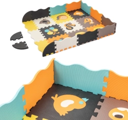 Šarena EVA pjenasta podloga s izvadivim oblicima životinja pretvara dječju sobu u sigurno i poticajno igralište. Pruža meko ublažavanje, toplinsku izolaciju i protukliznu površinu. Može se složiti kao ravna igraća površina ili ogradica, potiče razvoj motorike i učenje oblika i boja. Lako se čisti i vodootporna je.