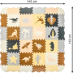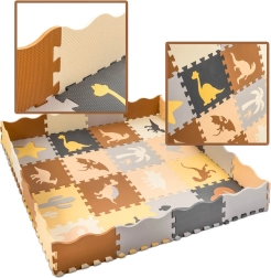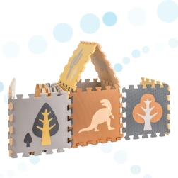 Stilovna pjenasta podloga s motivom dinosaura pretvara svaku sobu u sigurno i razigrano mjesto. Dijelovi se lako spajaju, možete od njih složiti veliku podlogu ili mekani ograđeni prostor. 36 dijelova, EVA pjena, protuklizna površina i vodootpornost osiguravaju udobnost, izolaciju od hladnoće i sigurnost pri prvim koracima.
