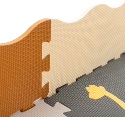 Podlogu je moguće koristiti kao veliku površinu za igru 143 × 143 cm ili sastaviti ogradicu 113 × 113 × 16 cm. Mekana EVA pjena ublažava udarce, izolira od hladnoće i ne kliže. Materijal je jednostavan za čišćenje – dovoljno je prebrisati vlažnom krpom. Elegantna neutralna paleta pristaje modernom interijeru i može zamijeniti tepih u dječjoj sobi.