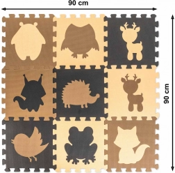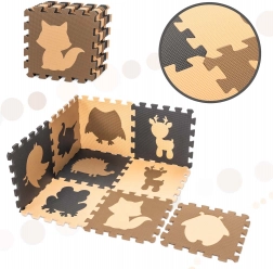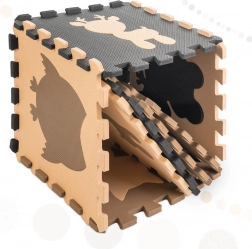 Meka i sigurna podloga za djecu od izdržljive EVA pjene u neutralnim bež i smeđim nijansama. Set od 9 dijelova s izrezivim životinjskim oblicima stvara površinu 85 × 85 cm i omogućuje slaganje i 3D oblika. Izolira od hladnoće, ublažava udarce, vodootporna je i lako se čisti. Idealna za prve korake, igru i učenje oblika.