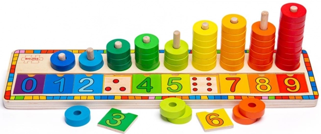 Numerički nizovi 0–9 i slaganje prstenova potiču djecu na prirodno razumijevanje količine, redoslijeda i osnova računanja.