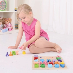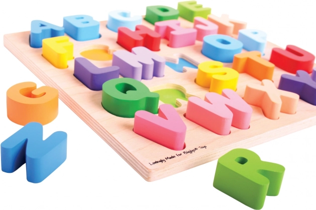 Velika drvena abeceda Bigjigs pruža djeci jedinstvenu priliku za upoznavanje s pismima zahvaljujući svojoj razigranoj i edukativnoj funkciji. Svako pismo je veselo obojeno, što olakšava prepoznavanje i pamćenje. Puzzle je izrađen od visokokvalitetnih materijala, sigurno je i idealno za male dječje ruke.