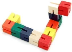 Šareni drveni mozgalica u obliku zmije nudi bezbroj mogućnosti kako djeca mogu istraživati svoju kreativnost. Okretanjem i preklapanjem pojedinih segmenata razvijaju spretnost i finu motoriku. Igračka je idealna i za putovanja; zahvaljujući džepnoj veličini djeca je mogu uvijek imati pri ruci. Drvene kocke čvrsto su povezane elastičnom gumom, što jamči njezinu izdržljivost i sigurnost.