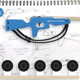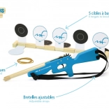 Drvena puška opremljena je podesivim tekstilnim remenima, idealnima za svako dijete. Pakiranje sadrži pet preklopnih meta i dvadeset gumica za ponovljeno gađanje. Postavite mete na različite udaljenosti i iskušajte svoju preciznost!
