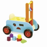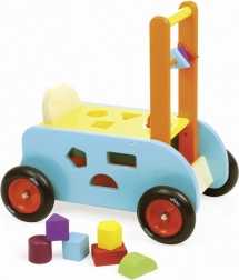 Ova multifunkcionalna drvena guralica 3-u-1 izvrstan je pratitelj za djecu od 12 mjeseci. Kao hodalica pomaže pri prvim koracima, kao odrážalo jača stabilnost i koordinaciju, a kao umetaljka potiče logičko razmišljanje i finu motoriku. Robusna drvena konstrukcija i veliki gumirani kotači osiguravaju sigurnost i glatku vožnju u domu i na glatkim podlogama.