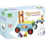 Stilska drvena guralica brenda VILAC spaja funkcije hodalice, odrážala i umetaljke. Zahvaljujući stabilnoj konstrukciji, velikim gumiranim kotačima i udobnom sjedalu s malim naslonom, idealna je za prve korake i vožnju. Šareni rotirajući elementi, umetanje oblika i truba s zvučnim efektima razvijaju motoriku, osjetilnu percepciju i prostornu maštu djece.