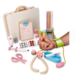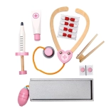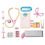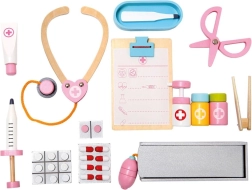 Set uključuje drvene alate poput stetoskopa, injekcijske štrcaljke i drugih pomagala koja podržavaju realističnu igru.