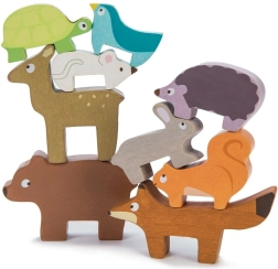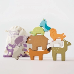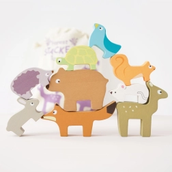 Ova drvena slagalica šumskih životinja iz kolekcije PETILOU osmišljena je za male istraživače. Djeca mogu slagati lisicu, zeca, ježa, medvjeda, miša, kornjaču, vjevericu, lane i ptičicu u zabavnu kulu, vježbati ravnotežu i otkrivati kako kula raste – i ponekad se uz osmijeh sruši. Zahvaljujući ugodnoj veličini, figurice savršeno pristaju u dječje ručice.