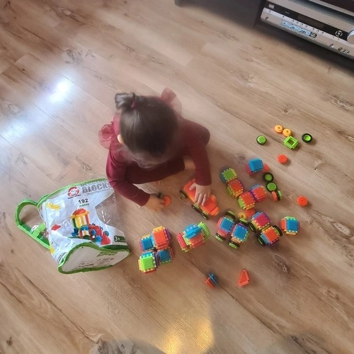 Ovaj raznobojni set s ježastom teksturom omogućuje djeci stvaranje beskonačnog broja konstrukcija – od kućica i vozila do fantastičnih dvoraca. Dijelovi imaju zaobljene krajeve za sigurnu igru od 3. godine te se lako spajaju i odvajaju.