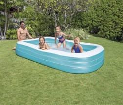 Nafukajući bazen INTEX Swim Center je idealan za ljetnu zabavu s obitelji ili prijateljima. Djeci i odraslima nudi osvježenje i opuštanje zahvaljujući svojim velikim i udobnim proporcijama.
