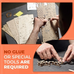 Sastavljanje je precizno i zabavno zahvaljujući 400 precizno izrezanih dijelova i detaljnim uputama. Model nudi mogućnost modularnog povezivanja – spojite dvije do četiri staze i izgradite sinkronizirani mehanički sklop pun dinamike i natjecanja s prijateljima.