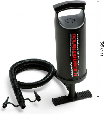 Praktična i izdržljiva pumpa INTEX Double Quick II osmišljena je za učinkovito napuhavanje bez napora. Pri pomicanju gore i dolje ubacuje zrak u napuhavani predmet, čime značajno skraćuje vrijeme potrebno za napuhavanje. Zahvaljujući kompatibilnosti s većinom ventila idealna je za napuhavajuće madrace, bazenske igračke, čamce i kolutove.