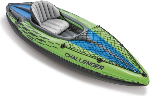 Lagan i stabilan napuhavajući kajak INTEX CHALLENGER K1 idealan je za početnike i napredne. Nudi jednostavnu manipulaciju, brzo napuhavanje zahvaljujući ventilima s visokim protokom i izdržljiv materijal s debljinom stijenki 0,75 mm. Udobnost osigurava napuhavajuće sjedalo s naslonom, praktična cargo mreža na pramcu i sigurnosno uže oko oboda. U kompletu su veslo i ručna pumpa za trenutačnu uporabu.