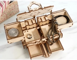 Ova originalna kutija za nakit u antičkom stilu kombinira precizno lasersko izrezivanje s pametnom mehanikom. Nakon sastavljanja dobit ćete funkcionalnu kutiju s prijenosima i pokretnim dijelovima koja osvaja na prvi pogled i sigurno čuva vaše dragocjenosti. Iskustvo sastavljanja je zabavno i poučno – bez ljepila, samo s precizno uklopljenim dijelovima od kvalitetne drvene šperploče.