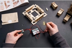 Set sadrži 340 precizno izrezanih drvenih dijelova i detaljne upute. Sastavljanje mogu savladati i spretniji početnici, a model će ponuditi dovoljno izazova i naprednima. Napajanje je moguće putem USB‑C ili 3× AA (nije uključeno u pakiranje), pa se model lako uklapa u svaki prostor.