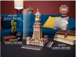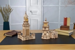 Otkrijte ljepotu antičke arhitekture s funkcionalnim 3D modelom Aleksandrijskog svjetionika. Detaljno lasersko graviranje imitira kamen i šindre, vrh krasi reljef Zeusa s munjom, a u postolju se nalaze vrata koja se otvaraju upravljana okretnim gumbima. Nakon uključivanja LED svjetla, svjetionik se pretvara u efektnu noćnu lampu i stilsku dekoraciju.