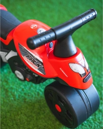 Crvena guralica motor FALK Racing odličan je izbor za prve samostalne vožnje. Zahvaljujući širokim kotačima vrlo je stabilna na raznim podlogama, a okretno prednje kolo olakšava manevriranje i u manjim prostorima. Kvalitetna izrada od vrlo izdržljive plastike podnosi svakodnevnu igru u kući i na otvorenom.