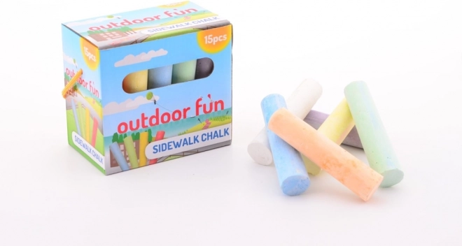 Set velikih kreda za pločnik u praktičnoj kutijici sadrži 15 komada, idealan za kreativno crtanje po pločnicima i drugim površinama.
