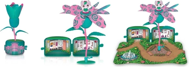 Unutar posudice pronaći ćete šarene sličice nalik maloj kućici, a u odabranim setovima i igralnu podlogu u obliku vrta. Cvjetiće i leptiriće moguće je međusobno kombinirati, pa dijete lako stvara svoj bajkoviti kutak. U napomeni uz narudžbu navedite koju vrstu želite – proizvod se isporučuje u različitim varijantama.