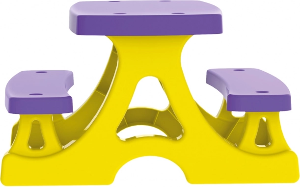 Set u živopisnoj žuto‑ljubičastoj kombinaciji uljepšat će svaki prostor i pružiti stabilno mjesto za užine, kreativne aktivnosti i zajedničke trenutke.