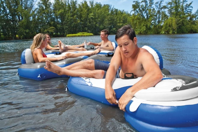 Izrađeno od unaprijed testiranog masivnog vinila. Približna veličina 1,30 m x 1,26 m. Nije igračka, namijenjeno za rekreativni sport. Čvrste ručke. Jednostavno se može spojiti s drugim proizvodima River Run. Dvije zračne komore, držač za piće. Priložena je zakrpa za popravak.