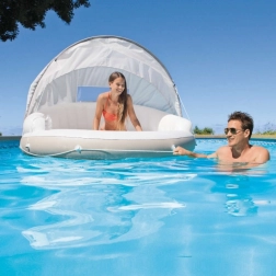 Nafukavajući otok INTEX pruža savršeno mjesto za opuštanje uz vodu. Odvojivo i podesivo sjenilo osigurava ugodnu sjenu kada sunce prži, a za sunčanje ga lako skinete. Široka površina i oblikovani nasloni za leđa donose udobnost za duge sate odmora.