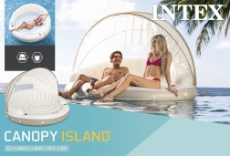 Uživajte u ljetu na maksimum s nafukavajućim otokom INTEX s odvojivom nadstrešnicom. Nudi udobne naslone za leđa, 2 držača za piće i izrađen je od izdržljivog PVC-a 0,45 mm. Zahvaljujući dvjema zračnim komorama stabilan je i siguran, idealan za bazen i mirne vode.