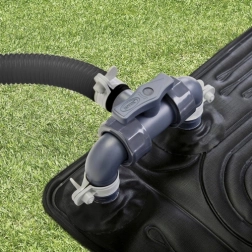 Zahvaljujući mogućnosti povezivanja više podloga prilagodit ćete grijanje volumenu svog bazena. Integrirani bypass ventil omogućuje regulaciju protoka ili privremeno isključivanje podloge iz kruga. Podloga podržava crijeva Ø 32 mm, a pomoću priloženih adaptera i Ø 38 mm. Za najbolji učinak koristite filtarsku pumpu protoka 2006–5678 l/h.