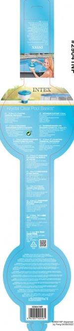 Plivajući dozator od Intexa slobodno pluta na površini vode, a njegov veliki dizajn osigurava vidljivost i sigurnost. Izrađen je od izdržljivog polipropilena i opremljen je sigurnim poklopcem koji može primiti klor ili brom tablete maksimalne veličine 7,5 cm.