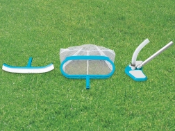 Set sadrži mrežicu, usisavač i četku koji pokrivaju sve potrebe čišćenja bazena.