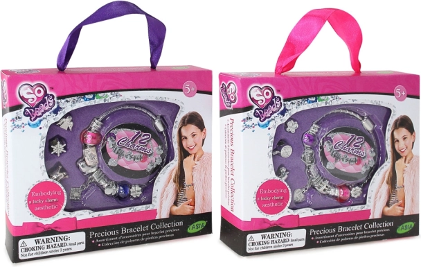Set sadrži narukvicu i 12 različitih privjesaka, što jamči neograničene mogućnosti kombiniranja. Idealna zabava za djecu od 5 godina koja će obožavati stvaranje vlastitih dizajna i rado se pohvaliti rezultatima svog rada.