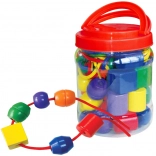 Velike drvene perle BABU izvrsne su za razvoj fine motorike i prepoznavanje boja. Set sadrži perle različitih oblika, boja i veličina, pakirane u praktičnu plastičnu kanticu.