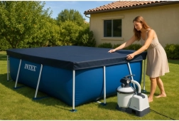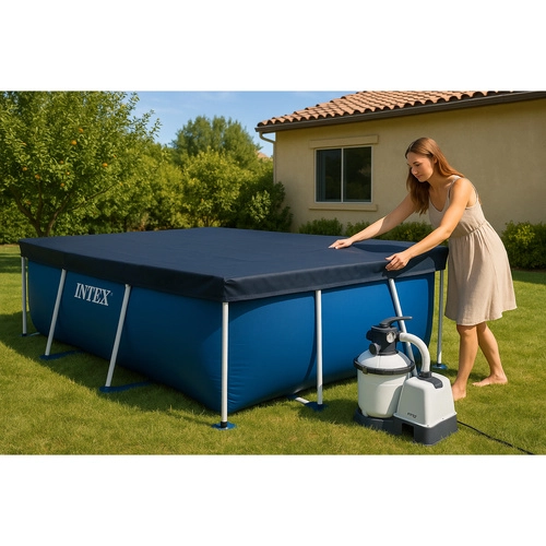 Pokrivač je namijenjen za pravokutne bazene s okvirom INTEX 300 × 200 cm i prianja cijelim obodom za maksimalan učinak.
