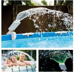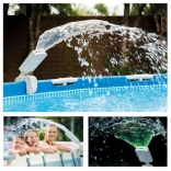 Uživajte u večernjem kupanju s čarobnim svjetlosnim učinkom. Fontana INTEX stvara dekorativni vodeni mlaz s LED pozadinskim osvjetljenjem u četiri boje (bijela, crvena, plava, zelena), poboljšava cirkulaciju i oksigenaciju vode te tako podupire učinkovitost bazenske kemije. Zahvaljujući hidroelektričnom generatoru ne treba vanjsko napajanje – svjetlo se automatski pali pri protoku vode.