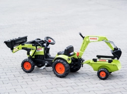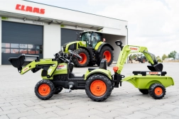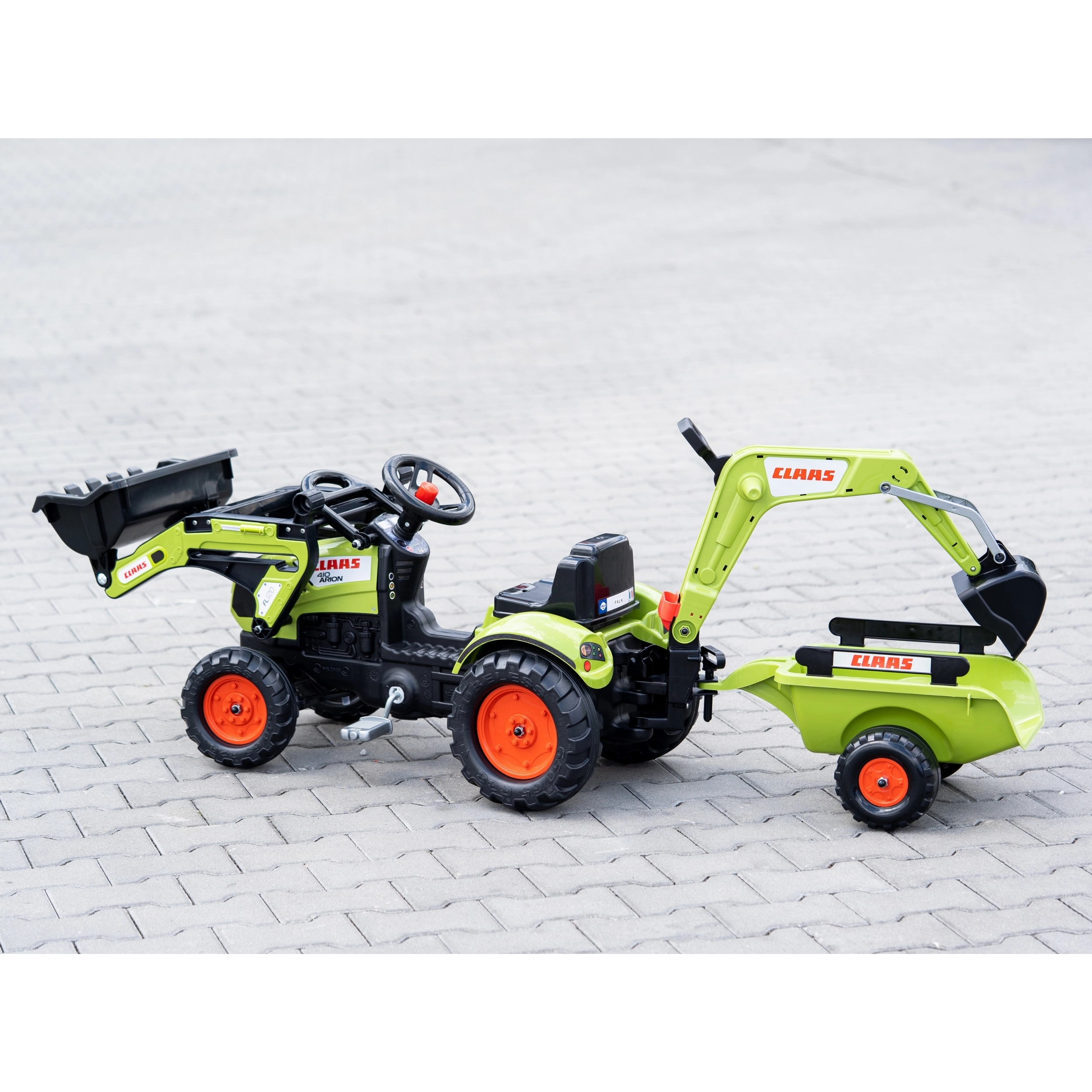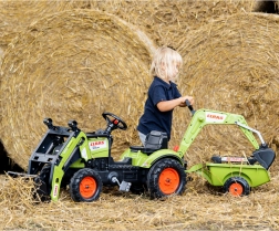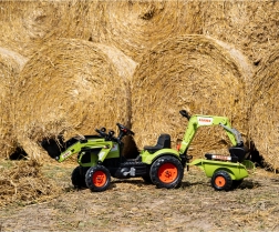 Razveselite malog traktoristu traktorom na pedale CLAAS ARION s prikolicom, žlicom i prednjim utovarivačem. Realistični detalji, truba u volanu i službene boje CLAAS potiču maštu i sate zabave. Robusna izrada od kvalitetne plastike i stabilno podvozje osiguravaju sigurnu vožnju od 2 godine.