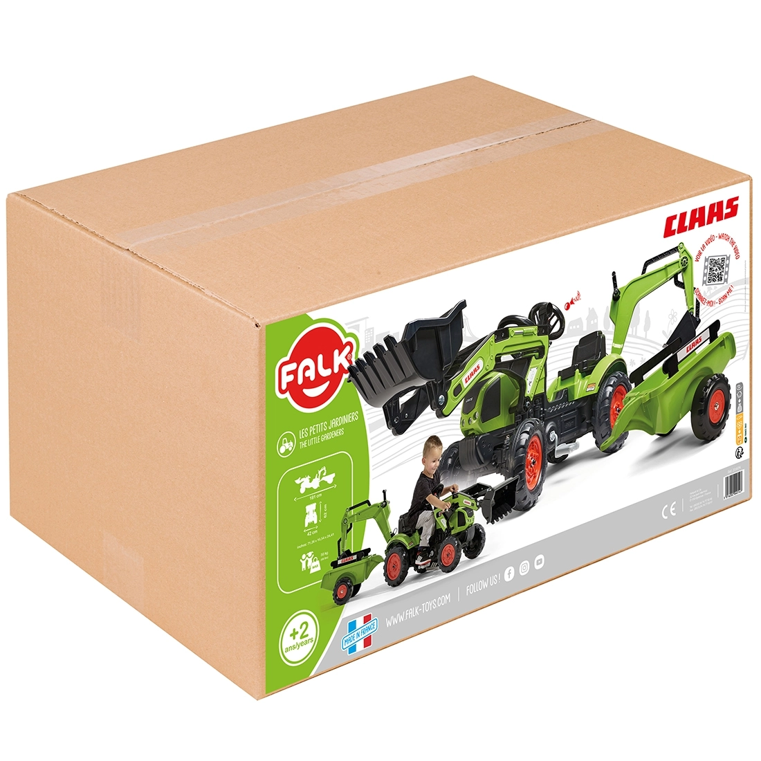 Dječji traktor na pedale CLAAS ARION marke Falk oduševit će male farmere od 2 godine. Nudi funkcionalni prednji utovarivač, pokretnu žlicu i odvojivu prikolicu. Zahvaljujući izdržljivoj plastici, stabilnoj konstrukciji i lančanom pogonu idealan je za sigurnu i kreativnu igru na otvorenom i u kući.