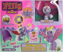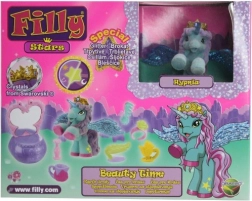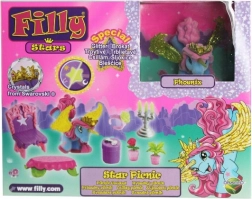 Set Filly Stars poziva djecu u svijet pun mašte. Konjić s čarobnim rogom, sjajnim krilima i krunom s kristalom inspirira priče o prijateljstvu, slavljima i čajankama. Zahvaljujući raznolikim dodacima, djeca lako stvaraju vlastite prizore te razvijaju maštu i finu motoriku.