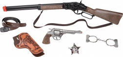 Pretvorite dječju igru Divljeg zapada u realistično avanturističko iskustvo. Ovaj veliki kaubojski set spaja klasičan izgled, sigurnu izvedbu igračaka i kvalitetne materijale. Metalna puška i revolver na kapisle (trakice s 8 hitaca) donose zvučni efekt koji djeca vole, dok lisice i šerifova zvijezda upotpunjuju cijeli outfit.