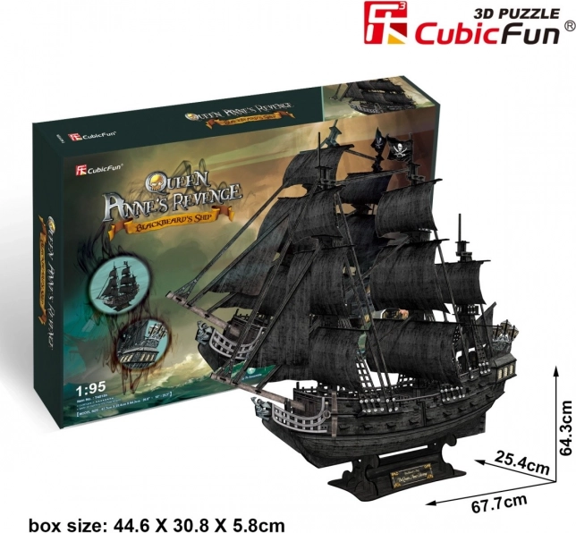 Uronite u čar graditeljstva s 3D puzzle Jedrenjak Queen Anne's Revenge. Ovaj set sadrži poseban materijal – otprilike 3 mm debelu pjenu prekrivenu laminiranim tiskanim papirom, koji osigurava čvrstoću i izdržljivost gotovog modela. Jednostavna montaža bez korištenja ljepila i škara omogućuje i djeci da se uključe i uživaju u radosti vlastoručno sastavljenog modela.