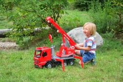 Ova crvena autodizalica MERCEDES ACTROS marke Lena oduševit će sve male graditelje. Zahvaljujući okretnom kraku, funkcionalnom vitlu s užetom, izvlačivim stabilizacijskim nogama i klinovima za osiguranje kotača, pruža djeci autentičnu i sigurnu igru s realističnim funkcijama. Proizvedena je u Češkoj od izdržljive plastike i prikladna je za interijer i eksterijer.