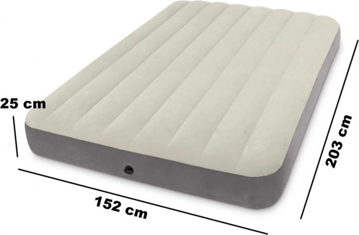 Nafukovajući madrac INTEX nudi udobno i stabilno spavanje za dvije osobe. Zahvaljujući vodootpornoj velur površini ugodan je na dodir i ne kliže, dok izdržljivi PVC osigurava dug vijek trajanja pri kućnoj uporabi i na putovanjima.