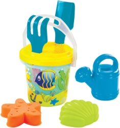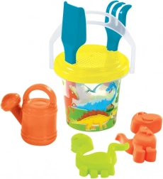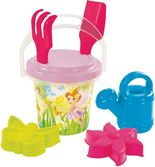 Veseli prozirni set za pijesak za djecu u tri motiva – vile, dinosauri i ribice – donosi puno zabave na pješčaniku i plaži. Sadrži kanticu od 1,3 l, grabljice, lopaticu, sito, kanticu za zalijevanje i dva kalupa. Proizvedeno u EU od kvalitetne plastike.