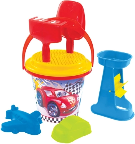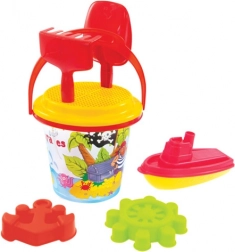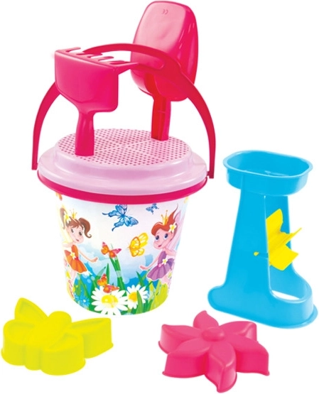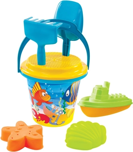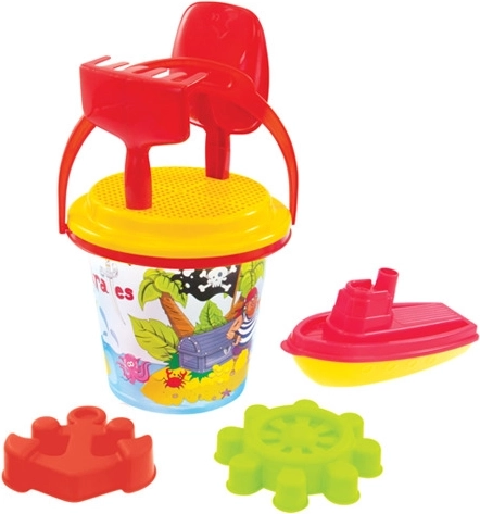 Set je proizveden u EU od čvrste, sigurne plastike koja podnosi igru u vodi i pijesku. Laka konstrukcija i ručka na kantici olakšavaju nošenje, a razni dječji motivi (vile, dinosauri, pirati, princeze, ribice) razveselit će svakog malog graditelja dvoraca.