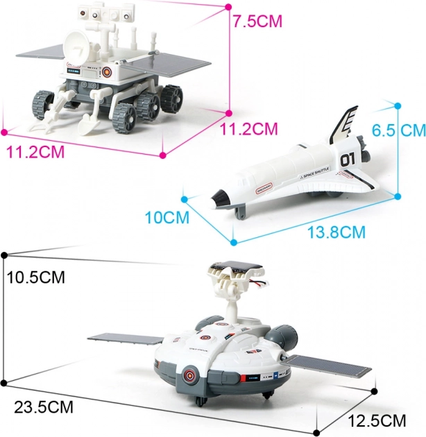 - 3 modela u 1 – svemirski šatl, lunarno vozilo, svemirska postaja.