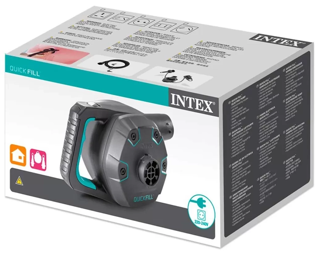 Zaboravite na dugotrajno pumpanje. Električna pumpa INTEX Quick-Fill može napuhati sve, od napuhavajućih kreveta do bazena i plažnih igračaka, u trenu. Zahvaljujući maksimalnom protoku od 1100 l/min dobivate visoke performanse i udobnost pri svakodnevnoj uporabi.