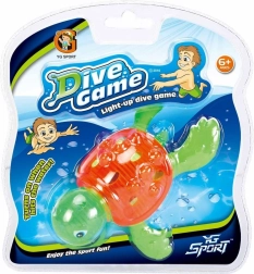 Svjetleća ronilačka kornjača DIVE GAME pretvara svako kupanje u zabavan izazov. Dovoljno ju je baciti u vodu i gledati kako zasvijetli – svjetlosni efekt mami djecu na kretanje, ronjenje i igre traženja igračaka ispod površine. Odličan izbor za ljetne dane uz bazen i za razigrana kupanja kod kuće.
